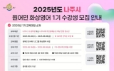 나주 김금덕 기자2025. 05.26[정보신문 = 김금덕 기자] 나주시가 관내 청소년들의 외국어 교육을 통해 글로벌 인재 육성에 박차를 가하고 있다. 나주시(시장 윤병태)는 오는 28일부터 6월 6일까지 초‧중학생을 대상으로 ‘원어민 화상영어 1기’ 수강생을 모집한다고 밝혔다. 원어민 화상영어 프로그램은 학생들이 영어에 대한 두려움을 해소하고 글로벌 인재로 성장할 수 있도록 나주시에서 추진하는 사업이다. 원어민과 실시간 1:3 그룹 화상영어 수업을 통해 저렴한 가격에 영어를 배울 수 있다. 수강 신청은 나주시 화상영어 홈페이지www.naju...