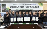 순천 남재옥 기자2025. 12.11[정보신문 = 남재옥 기자] 장수군은 장수한우지방공사, 이티바이오텍(주), 전북대학교와 장수군청 회의실에서 장수한우 품질 고급화를 위한 ‘장수형 저탄소 종모우 개발’ 공동연구 상호협력 업무협약(MOU)을 체결했다고 11일 밝혔다. 이번 협약은 협약기관 간 상호 업무협조 체계를 구축해 장수 한우 산업의 경쟁력을 높이기 위한 장수 지역 사양환경에 적합한 우수 유전자원을 확보하고, 탄소배출을 줄이면서도 생산성과 품질을 높일 수 있는 종모우 개발을 위해 마련됐다. 특히 종모우 개발을 통해 장수 한우 고유의 유전형질을 확립하고 ...