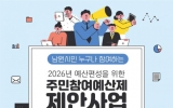 남원 김금덕 기자2025. 05.01[정보신문 = 김금덕 기자] 남원시가 5월 1일부터 6월 30일까지 ‘2026년도 예산편성을 위한 주민참여예산제 제안 사업 공모’를 진행한다. '주민참여예산제도'는 예산편성 과정에 주민 참여의 기회를 보장하고 재정 운영의 투명성을 높이기 위한 제도다. 공모 규모는 총 20억 원이며 남원시민 누구나 참여할 수 있다. 신청은 남원시 누리집(정보공개 > 주민참여예산 > 예산사업제안) 온라인 접수, 기획예산과, 각 읍·면·동 행정복지센터에 방문 또는 우편 접수 등으로 온오프라인 모두 가능하다. 접수된 사업은 해당 부서의 ...