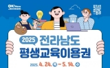 전남 김금덕 기자2025. 04.23[정보신문 = 김금덕 기자] 전라남도와 전남인재평생교육진흥원은 24일부터 5월 14일까지 저소득층 및 장애인 성인을 대상으로 2025년 전라남도 평생교육이용권(평생교육바우처) 1차 대상자를 모집한다고 밝혔다. 평생교육이용권은 사회·경제적 여건에 따른 평생교육 참여 격차를 완화하고 평생교육 기회를 확대하기 위해 교육비를 지원하는 제도다. 지원 대상은 저소득층 성인(19세 이상 기초생활수급자·차상위계층 우선), 19세 이상 등록장애인, 65세 이상 노인, 30세 이상 디지털 관련 평생교육 수강 희망자 등이다. 이번 1차...