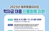제주도 김금덕 기자2025. 04.21[정보신문 = 김금덕 기자] 제주특별자치도는 학자금 대출 상환에 어려움을 겪는 청년들의 경제적 재기를 돕기 위해 2025년 학자금 대출 신용회복 지원사업을 추진한다. 올해부터는 학자금 대출 상환 약정 시 필요한 최초 입금분의 지원한도를 채무금액의 5%에서 10%로 대폭 상향해 도내 청년들의 원활한 금융생활 복귀를 적극 지원한다. 한국장학재단 학자금 대출 분할상환약정 체결 시 최초 입금분을 지원하며, 채무금액의 10%(최대 100만 원)까지 지원받을 수 있다. 지원 대상은 만 19세부터 39세까지의 청년으로, 신청일 기준 ...