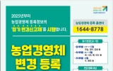 곡성 김금덕 기자2025. 04.08[정보신문 = 김금덕 기자] 국립농산물품질관리원 전남지원 곡성·구례사무소(소장 이정화, 이하 농관원 곡성구례사무소)는 농업경영체 정보의 정확도를 높이기 위해 4월부터 6월까지 벼·사과·배 등 하계작물 정기 변경 신고 기간을 운영한다. 농업경영체 등록 농업인은 공익직불 등 농업 관련 융자·보조 사업* 지원혜택을 받는 대신 농어업경영체법 제4조에 따라 변경등록의 의무가 주어진다. 이는 정확한 농업경영체 등록정보를 토대로 정책지원을 추진하고 농산물 수급 등 정책 기초자료로 활용하는 등 농정 발전의 선순환 구조를 만들기 위한 방안이다...