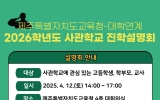 교육 김금덕 기자2025. 04.01[정보신문 = 김금덕 기자] 제주특별자치도교육청(교육감 김광수)은 오는 12일 오후 2시 도교육청 4층 대회의실에서 도내 고등학생과 보호자의 대입 접근성을 강화하고 맞춤형 대학진학정보를 제공하기 위해‘제주특별자치도교육청-사관학교 연계 2026학년도 진학설명회’를 개최한다. 이번 설명회는 오는 6월 중순부터 원서접수가 시작되는 사관학교(육군사관학교, 해군사관학교, 공군사관학교, 국군간호사관학교)를 초청해 사관학교별 2026학년도 입학전형 안내와 각 사관학교 담당자가 진행하는 1대1 진학 상담을 통해 사관학교별 입학전형의 특성을 ...
