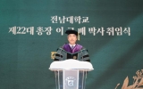 북구 김금덕 기자2025. 03.26[정보신문 = 김금덕 기자] 전남대학교 제22대 이근배 총장의 취임식이 3월 26일 오후 3시 전남대 민주마루에서 열렸다. 이날 취임식에는 지병문·정병석·정성택 전임 총장을 비롯해 강기정 광주광역시장, 이정선 광주광역시교육감, 류혜경 전남대 총동창회장 및 역대 총동창회장단, 고병일 광주은행장, 김한석 KBS광주방송총국장, 류영현 KBC광주방송 대표이사 등 지역 주요 인사들이 참석했다. 또한 전남대 학(원)장, 학생, 교직원 등 대학 구성원 300여 명이 함께했다. 취임식은 정은경 교육혁신본부장과 김두운 교무부처장의 사회로...