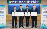 전북 김금덕 기자2025. 03.07[정보신문 = 김금덕 기자] 전북특별자치도가 외국인 유학생의 취업 및 창업 생태계를 본격적으로 구축한다. 전북자치도는 7일 원광대학교, 한국생산성본부, ㈜참프레와 외국인 유학생의 취업 및 창업을 지원하는 협약을 체결했다. 이번 협약은 유학생들에게 지역 내 정착 기회를 제공하고, 기업과 연계해 안정적인 취·창업 환경을 조성하기 위해 마련됐다. 협약식에는 김관영 전북특별자치도지사, 박성태 원광대 총장, 박성중 한국생산성본부 회장, 김재윤 ㈜참프레 대표이사가 참석했다. 이번 협약은 전북자치도의 글로벌 인재 유치 전략과 연...