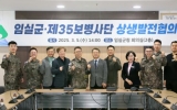 [정보신문 = 김금덕 기자] 임실군과 제35보병사단이 지난 5일 상호 간의 현안을 해결하고 상생발전을 협력하기 위해 상생발전협의회를 개최했다. 이 자리에는 이진관 부군수와 관련 부서장, 35사단 참모들이 참석하여 상생발전 협조 사항 등을 논의했으며, 매년 2차례 정례회의를 갖기로 했다. 회의에서는 신병교육대대 주차장 포장, 군부대 주변 시설 정비, 재난 발생 시 대민 지원 등 13건의 안건에 대해 논의가 진행됐다. 이진관 부군수는“임실군에 35사단 군부대 이전 후, 지역경제 활성화와 인구 유입 효과가 높다”며“군부...