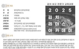 광주 김금덕 기자2025. 03.06[정보신문 = 김금덕 기자] 광주광역시김치타운과 세계김치연구소는 오는 4월11일까지 ‘2025 김치 리더스 아카데미’ 수강생을 모집한다. ‘김치 리더스 아카데미’는 급변하는 김치산업과 국내외 환경에 발맞춰 대응할 수 있는 전문인력 양성을 위해 개설됐다. 김치의 역사와 문화, 과학, 산업기술에 이르기까지 김치에 관한 모든 것을 배울 수 있는 김치 전문가 양성 교육과정이다. 구체적으로 ▲김치의 역사와 문화 ▲발효식품으로서 김치와 종균에 대한 과학적 이해 ▲김치 제조 과정 ▲김치산업의 최신 동향 및 관련 법규 ▲세계의 발효식품...