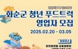 화순 김금덕 기자2025. 02.21[정보신문 = 김금덕 기자] 화순군(군수 구복규)은 지난 20일 화순군에 거주하는 청년들에게 푸드트럭을 이용하여 창업할 수 있도록 푸드트럭 지원 사업자를 모집한다고 밝혔다. 신청 자격은 공고일 기준 화순군 관내 주민등록이 되어 있는 18세 이상 49세 이하인 청년으로 푸드트럭 영업 신고와 운영을 할 수 있는 자다. 지원 규모는 푸드트럭 1대, 1천6백만 원까지 개조 비용을 지원할 예정이며, 운영 장소는 한천 휴양림 내 오토캠핑장이다. 신청은 2월 20일부터 3월 5일까지 공모신청서·사업계획서·운전면허증 사본·주민등록...