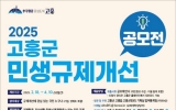 고흥 김금덕 기자2025. 02.20[정보신문 = 김금덕 기자] 고흥군(군수 공영민)은 2월 18일부터 4월 10일까지 군민의 일상생활과 기업 활동에 불편을 주는 불합리한 규제를 발굴·개선하기 위해 ‘2025년 민생규제 개선과제 공모전’을 개최한다고 밝혔다. 이번 공모전은 온라인 접수 창구(고흥군 대표 누리집→열린민원→신고센터→규제신문고→규제공모전)를 마련해 접근성을 높였으며, 지역의 핵심과제뿐만 아니라 민생을 저해하는 불합리한 규제를 집중적으로 발굴하고 개선하기 위해 기획됐다. 공모 분야는 ▲노인, 장애인, 저소득층 등 복지 저해 규제 ▲청년·경력단절자 ...
