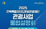 전남 김금덕 기자2025. 02.18[정보신문 = 김금덕 기자] 전북특별자치도문화관광재단(이하 재단, 대표이사 이경윤)이 20일 오후 2시에 전북관광기업지원센터에서 ‘2025년 관광사업 통합설명회’를 개최한다. 이번 설명회는 2025년 관광사업의 추진 방향과 주요 사업을 공유하고, 전북특별자치도(이하 자치도) 관광 분야의 협력 체계를 강화하기 위해 마련됐다. 주요 사업은 ▲ 글로벌마이스육성센터, ▲ 전북형 워케이션 활성화, ▲ 전북자치도 한 달 여행하기, ▲ 웰니스·의료관광 융복합클러스터 등 관광 및 MICE 분야이며, 추진 방향이 소개될 예정이다. ...
