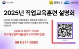 여수 김금덕 기자2025. 02.10[정보신문 = 김금덕 기자] 여수여성인력개발센터(관장 박은영)가 오는 12일(수) 오전 10시 30분, 센터 4층 누리마루 강당에서 ‘2025년 직업교육훈련 설명회’를 개최한다. 여수시에 따르면 이번 설명회는 취업과 창업을 희망하는 여성 구직자를 대상으로 하며 직업교육훈련 과정과 유망 직종 정보, 1:1 맞춤형 상담 서비스를 제공한다. 올해 제공되는 직업교육훈련은 ▲직업상담 현장실무자 ▲ERP회계인사 ▲AI 활용 디지털마케터 ▲통합간호조무사 ▲반려동물 코디네이터 양성과정 등 5개 과정이다. 이외에도 ▲뇌건강지도사 ▲통합놀...