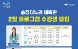 동구 김금덕 기자2025. 02.07[정보신문 = 김금덕 기자] 광주시 광산구(구청장 박병규)는 올해 1월부터 직영하고 있는 송정다누리체육관에서 주민들을 대상으로 운동 프로그램 운영을 모집한다고 밝혔다. 지난 1월 8일∼16일까지 9일간 송정 1·2동 주민들을 대상으로 진행한 프로그램 수요 설문조사 결과를 바탕으로 가장 선호도가 높았던 △요가 △배드민턴(초급, 중급) △탁구(초급) 수업을 신규 개설했다. 신청 대상은 13일까지 주민 누구나 신청할 수 있으며 송정다누리체육관(광산구 광산로 70, 6층)에서 선착순으로 현장 접수하고 있다. 프로그램에 관련한 자...