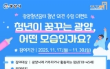광양 남재옥 기자2025. 11.17[정보신문 = 남재옥 기자] 광양청년꿈터가 11월 17일부터 11월 30일까지 ‘청년이 꿈꾸는 광양, 어떤 모습인가요?’를 주제로 청년 의견 수렴 이벤트를 진행한다. 이번 이벤트는 광양시 청년들의 다양한 목소리를 듣고, 청년이 바라는 광양의 미래상을 향후 청년정책과 프로그램 운영에 반영하기 위해 마련됐다. 참여 대상은 광양시에 거주하거나 광양시에서 활동하고 있는 18세~45세 이하 청년이다. 참여 방법은 광양청년꿈터 공식 SNS(네이버 블로그·인스타그램) 중 한 곳을 팔로우한 뒤, ‘청년이 바라는 광양의 모습’을 자유롭...
