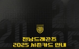 순천 김금덕 기자2025. 01.31[정보신문 = 김금덕 기자] 전남드래곤즈가 2025시즌 홈경기 관람을 누릴 수 있는 시즌권을 판매한다. 전남의 2025 시즌권은 차감형 카드 형태로 K리그2와 코리아컵(결승전 제외) 홈경기 20회를 관람할 수 있으며, 권종은 좌석 구역별로 플래티넘(VIP석), 프리미엄(2인 테이블석), 골드(W석), 옐로우(E,N,S석), 리틀(W,E,N,S석/초등학생용) 5개로 구분되어 있다. 플래티넘(PLATINUM)은 광양축구전용구장 내 정문 주차장에 주차가 가능하며, 본부석에 위치한 VIP게이트로 입장하여 VIP라운지와 관람석을 ...