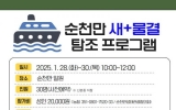 순천 김금덕 기자2025. 01.23[정보신문 = 김금덕 기자] 순천시(시장 노관규)는 순천만생태관광협의회와 함께 순천만습지에서 28일부터 30일까지 방문객과 철새를 잇는 특별 프로그램인 ‘새+물결 탐조 특별 프로그램’을 운영한다고 밝혔다. 이번 프로그램에서는 생태체험선을 타고 순천만 하늘을 나는 겨울철새의 모습을 선상에서 직접 관찰할 수 있으며, 전문 해설사의 해설과 함께 순천만쉼터에서 판매되는 지역특산 간식도 맛볼 수 있다. 프로그램은 28일부터 30일까지 매일 1회, 오전 10시부터 12시까지 2시간 동안 진행되며 프로그램 참여는 회차당 선착순 30...