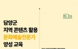 담양 김금덕 기자2025. 01.17[정보신문 = 김금덕 기자] (재)담양군문화재단(이사장 이병노, 이하 재단)은 다음달 7일까지 문화예술 전문가 양성 기초과정 참여자를 모집한다고 밝혔다. 재단 문화예술 전문가 양성 과정은 담양군 지역 문화를 기반으로 문화예술전문가를 육성하기 위한 교육으로, 2월 20일부터 4월 3일까지 총 7회차 과정을 매주 목요일(1·2회차 목·금요일) 오후 5시에 진행한다. 이번 교육은 지역 문화를 활용한 콘텐츠 기획을 주제로 다방면의 문화·예술 전문가로부터 문학, 축제, 공연, 뮤지컬과 같은 콘텐츠뿐만 아니라 경영, 마케팅 등에 대...