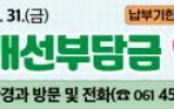 무안 김금덕 기자2025. 01.13[정보신문 = 김금덕 기자] 무안군(군수 김산)은 경유차에 대해 매년 연 2회(3·9월) 납부하는 환경개선부담금을 선납하면 납부액의 10%를 감면하는 환경개선부담금 연납제를 오는 31일까지 접수한다. 연납 대상 기간은 2024년 7월 1일부터 2025년 6월 30일까지 관내 등록된 환경개선부담금 부과 대상인 노후 경유차(2012년 3월 이전 출고) 소유자로, 위택스(wetax) 또는 군 환경과 방문 및 전화(☎061-450-5564~5) 신청할 수 있다. 연납 기간인 1월 16일부터 31일까지 위택스·가상계좌·은행 자동화...