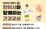 광산구 김금덕 기자2025. 01.10[정보신문 = 김금덕 기자] 광주시 광산구(구청장 박병규)가 ‘한의사와 함께하는 건강 교실’을 운영한다. 광산구는 생애주기별 특성에 맞는 한방 양생과 한의약 건강관리 프로그램 제공으로 지역주민의 건강 증진을 도모하기 위해 마련했다. 한의사와 함께하는 건강 교실은 △한의학적 면역력 높이기 △조선 왕실의 건강 비법 △만성질환의 관리 △체질별 건강관리 등 총 4회차로 구성했다. 건강 교실은 회차당 30여 명을 대상으로 각 주제에 맞는 강좌와 한방 힐링 체험 등으로 진행한다. 1회차인 한의학적 면역력 높이기는 내 몸의 면역...