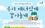 익산 남재옥 기자2025. 11.13[정보신문 = 남재옥 기자] 익산시가 올바른 반려동물 문화 확산을 위한 교육의 장을 연다. 익산시는 오는 29~30일 함열 다송무지개 매화마을에서 '반려동물 문화교실'을 열고, 반려동물 이론 교육과 실습을 진행한다고 13일 밝혔다. 이번 교육은 사람과 동물이 함께 어울리는 사회 분위기를 조성하고, 성숙한 반려동물 인식과 예절 확산을 위해 마련됐다. 참가비는 무료이며, 교육 대상은 동물보호법에 따라 동물등록을 완료한 익산시민이다. 참여를 원하는 경우 익산시 누리집을 통해 온라인으로 신청하면 된다. 신청 기간은 오는 17~2...