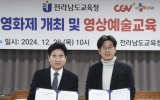 교육 김금덕 기자2024. 12.26[정보신문 = 김금덕 기자] 전라남도교육청(교육감 김대중)과 CJ CGV(대표이사 허민회)는 26일 전남교육청 비지니스실에서 글로컬 학생영화제 개최 및 영상예술교육 활성화를 위한 업무협약을 체결했다. 이번 협약은 지난 11월 CGV목포평화광장점에서 성황리에 열린 ‘제1회 전라남도교육청 작은학교 영화․영상제’를 더욱 발전시켜 (가칭)글로컬 학생영화제로 새롭게 개최해, 전남교육의 가치와 우수성을 널리 알리기 위해 추진됐다. 전남교육청은 최고의 상영 서비스 시스템을 보유한 CJ CGV의 지원을 바탕으로, 전남 학생과...