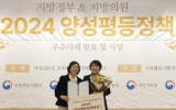 곡성 김금덕 기자2024. 12.26[정보신문 = 김금덕 기자] 광주 서구의회 오미섭 의원이 (사)지방자치발전소에서 주관한 양성평등정책대상에서 ‘여성신문&전여네(전국여성지방의원네트워크) 상’을 수상했다. 시상식은 26일 국회도서관 소회의실에서 진행됐다. (사)지방자치발전소는 양성평등정책 우수사례를 발굴하고, 정책의 실현에 공로가 있는 의원 등을 시상하여 우수한 양성평등정책을 홍보하고 확산시키기 위해 양성평등정책대상 공모전을 진행하였다. 오 의원은 ▲성인지 예산·결산제 강화 ▲성주류화 정책추진을 위한 시스템 구축 ▲여성폭력 피해자 지원과 방지 위한 제도개선 ...
