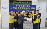 제주도 김금덕 기자2024. 12.14[정보신문 = 김금덕 기자] 11일, 제주혼디로타리클럽(회장 김윤정)은 김장김치 나눔봉사 행사를 진행하고 탐라장애인종합복지관(관장 고현수)에 김장김치 40포기를 전달했다. 기부받은 김장김치는 지역사회 내 재가 장애인들에게 제공되어 나눔의 의미를 되새기고 희망을 전하게 될 예정이다. 제주혼디로타리클럽(회장 김윤정)은“ 이번 김장 나눔봉사가 지역사회의 장애인들에게 따뜻한 위로와 희망을 전달하기를 바란다”며, “앞으로도 로타리클럽은 나눔과 봉사를 통해 지역사회의 발전에 기여할 것”이라고 전했습니다. 한편, 제주혼디로타리클...