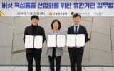 강진 김금덕 기자2024. 12.06[정보신문 = 김금덕 기자] 장흥군버섯산업연구원(이사장 김성)이 진균 소재의 산업화와 기업·연구기관의 상생을 위해 전라남도농업기술원, ㈜팜스빌과 손을 잡았다. (재)장흥군버섯산업연구원은 지난 28일 진균류 바이오·헬스 소재 상용화 지원사업의 일환으로 전라남도농업기술원과 건강기능식품 개발 및 유통 전문 기업인 팜스빌과 함께 진균류 소재 개발 및 상용화를 위한 업무협약(MOU)를 체결했다고 밝혔다. 이날 협약식에는 김행란 전라남도농업기술원장, 김경제 (재)장흥군버섯산업연구원장 직무대리, 이병욱 ㈜팜스빌 대표 등이 참석했다. ...