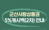 전주 남재옥 기자2025. 11.11[정보신문 = 남재옥 기자] 군산시가 행정안전부로부터 지역사랑상품권 발행 관련 특별지원 국비 보조금을 추가로 교부받아 특별 캐시백 적립 혜택을 제공한다. 혜택은 11월 10일부터 예산이 소진될 때까지 시행되며, 모바일형 및 카드형 군산사랑상품권을 사용하는 시민이 대상이다. 예산은 집행이 우수한 전국 32곳에만 추가 교부된 특별지원비로 추진되며, 총 171억 4천만 원 규모의 사업 예산에서, 군산시는 8억 6천만 원을 전액 국비로 교부받아 진행한다. 이번 사업으로 시민들은 월 최대 70만 원 사용 시 추가 캐시백 한...