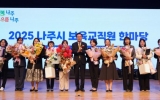 나주 김금덕 기자2025. 11.10[정보신문 = 김금덕 기자] 나주시(시장 윤병태)는 지난 7일 나주문화예술회관에서 나주시 어린이집 보육 교직원 550여 명이 참석한 가운데 ‘어린이집 보육 교직원 한마음대회’를 개최했다. 나주시어린이집연합회 주관으로 열린 이번 행사는 보육 교직원 윤리 강령 선서, 보육 교직원 유공 표창장 시상, 재즈 색소폰 및 댄스 크루 공연 등으로 구성되어 보육 교직원들의 사기를 높이는 의미 있는 행사로 꾸며졌다. 나주시어린이집연합회 김귀순 회장은 “오늘 한마음대회가 보육 교직원들의 화합과 단결을 도모하는 계기가 되었으면 한다”며 “앞...