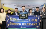 나주 김금덕 기자2024. 11.27[정보신문 = 김금덕 기자] 나주시(시장 윤병태)는 지난해 도내 22개 지자체 중 최우수상을 수상한 '청정전남 으뜸마을 만들기' 사업의 성과를 주민들과 나누기 위해 지난 26일 국립나주숲체원 강당에서 성과공유회를 개최했다고 27일 밝혔다. 이번 행사에는 ‘청정전남 으뜸마을 만들기’ 사업에 참여한 마을 대표와 주민 200여 명이 참석해 한 해 동안의 성과를 돌아보고 노고를 격려하며 화합을 다지는 시간을 가졌다. 행사는 2024년 ‘청정전남 으뜸마을 만들기’ 우수마을 시상을 시작으로 나주마을넷 소개, 우수사례 발표, 202...