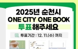 순천 김금덕 기자2024. 11.26[정보신문 = 김금덕 기자] 순천시(시장 노관규)가 오는 12월 11일까지 2025년 한 해 동안 순천시민이 함께 읽을 ‘2025년 순천시 One City One Book’ 선정을 위한 시민 투표를 진행한다고 밝혔다. One City One Book 시민 투표는 온라인과 오프라인으로 진행된다. 온라인은 네이버폼(https://naver.me/xcnlHuRL)에서 진행하며, 온라인 투표 후 인스타그램 이벤트에 참여하면 추첨을 통해 100명에게 커피 기프티콘을 증정하는 이벤트도 운영한다. 오프라인은 순천시립도서관(삼산, 그림책, ...