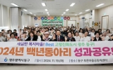 동구 김금덕 기자2024. 11.20[정보신문 = 김금덕 기자] 광주시 동구(청장 임택)는 지난 19일 푸른마을공동체센터에서 건강한 노후생활을 위해 어르신들의 여가 활동을 지원하는 ‘2024년 백년 동아리 성과 공유회’를 성황리에 개최했다고 밝혔다. 동구는 ‘고령친화도시’ 조성을 위한 정책 일환으로 지난 2021년부터 어르신들의 건전한 여가문화 형성, 사회 참여와 교류를 촉진하는 ‘백년동아리’ 사업을 적극 추진해 오고 있다. 사업 초기인 2021년 6개 분야 150여 명으로 시작한 백년 동아리는 어르신들의 적극적인 참여와 관심으로 2022년 8개 분야 2...