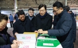 전북 남재옥 기자2026. 02.12[정보신문 = 남재옥 기자] 전북특별자치도는 설 명절을 앞둔 12일 새벽, 김관영 도지사가 전주시 농수산물도매시장을 방문해 과일 경매장을 중심으로 농산물 출하 동향과 가격 흐름을 직접 점검하고 현장 관계자들을 격려했다고 밝혔다. 이날 현장에는 우범기 전주시장과 전주원예농협 임종경 조합장, 농협중앙회 전북본부 김성훈 본부장 등이 함께했으며, 설 성수기를 맞아 거래가 활발히 이뤄지고 있는 과일 경매 현장을 둘러보며 품목별 출하 상황과 거래 가격을 세밀히 살폈다. 김 지사는 사과, 배, 딸기 등 명절 수요가 집중되는 주요 성수...