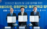 제주도 김금덕 기자2024. 11.07[정보신문 = 김금덕 기자] 제주특별자치도가 대학교육의 혁신과 지역발전을 접목한 런케이션(Learning+Vacation) 프로젝트를 본격 추진한다. 제주의 자연환경과 문화자원을 교육 현장으로 활용하며, 대학과 지역사회가 함께 성장하는 새로운 협력 모델이다. 제주도는 7일 서귀포시 남원읍 신흥1리 마을회관에서 제주대학교, 경희대학교와 런케이션, 교육·연구 분야 교류 활성화 및 지역발전을 위한 업무협약을 체결했다. 협약식에는 오영훈 제주도지사와 김일환 제주대학교 총장, 김진상 경희대학교 총장을 비롯해 송영훈 제주도의회 의원...