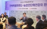 전북 김금덕 기자2024. 11.07[정보신문 = 김금덕 기자] 전북특별자치도는 7일 전주 N타워컨벤션에서 도내 농업인들의 긍지와 공로를 기리는‘2024년 전북 농업인의 날 기념행사’를 개최했다. 이번 행사는 농생명산업의 중심지로서 전북 농업인의 노고를 격려하고, 도민에게 안전한 먹거리를 제공하기 위한 농업의 중요성을 강조하기 위해 마련됐다. 이날 행사에는 김종훈 전북자치도 경제부지사, 노창득 전북농업인단체연합회장, 임승식 도의회 농업복지환경위원장, 김영일 농협중앙회 전북본부장, 이정문 한국농어촌공사 전북본부장을 비롯한 농업인 단체 회원 등 약 150여 ...