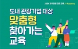 사회 김금덕 기자2024. 10.29[정보신문 = 김금덕 기자] 제주특별자치도와 제주관광공사(사장 고승철)는 지난 8월부터 운영 중인 도내 관광기업 대상 맞춤형 온라인 교육과정에 이어, 지난 28일부터 온라인 채널을 통해 찾아가는 교육 참여 기업을 선착순으로 모집하고 있다고 29일 밝혔다. 이번 찾아가는 교육은 맞춤형 온라인 교육과정에 참여한 기업을 대상으로 우선 모집을 시행하고 있으며, 도내 숙박업 및 관광사업체 등 총 7개사를 선정할 예정이다. 모집대상은 도내 3인 이상 관광기업이면 접수 가능하고, 교육비용은 무료다. 교육은 ▲고객 경험 관리를 통...