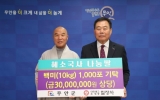무안 김금덕 기자2024. 10.25[정보신문 = 김금덕 기자] 무안군(군수 김산)은 지난 23일 운남면 성내3리 박순복 이장이 지역아동센터에 전달해달라며 쌀 700kg를 무안군에 기탁했다고 밝혔다. 군은 기탁받은 쌀을 관내 지역아동센터에 17개소에 배부하여 340여명의 아이들의 급식에 사용할 예정이다. 박순복 이장은 기탁식을 극구 사양했으며 “따뜻한 밥 한 끼를 아이들과 나눌 수 있는 것만으로도 보람됨을 느낀다”고 마음을 전했다. 김산 군수는 “작년에 이어 올해도 아름다운 동행에 함께해주셔서 박순복 이장님께 감사드린다”며 “아이들을 위한 다양한 복지...