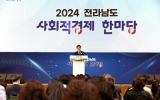 정치 김금덕 기자2024. 10.25[정보신문 = 김금덕 기자] 전남도의회 김태균 의장은 10월 25일 오전 11시 영광국민체육센터에서 열린 ‘2024년 전남 사회적경제 한마당’ 행사에 참석해 “사회적경제 기업은 취약계층의 자립을 위해 중간에 맥이 끊기거나 침체되면 안된다”고 강조했다. 이날 열린 사회적경제 한마당에는 전라남도의회 박원종․오미화 의원을 비롯해 기업인, 청년활동가 등 500여 명이 참석한 가운데 유공자 표창과 기부물품 전달, 사회적 가치 확산을 위한 퍼포먼스 순으로 진행됐다. 김태균 의장은 축사에서 “사회적경제 기업은 우리 경제의 ...
