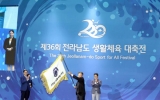영광 김금덕 기자2024. 10.22[정보신문 = 김금덕 기자] 영광군(군수 장세일)이 제36회 전남생활체육대축전 폐회식에서 완도군으로부터 전남생활체육대축전 대회기를 전달받으며 차기 대회 개최지가 영광군임을 알렸다. 이날 폐회식은 400여 명의 내·외빈과 22개 시군 선수단이 참석한 가운데 종합시상, 대회기 인수, 폐회선언 순으로 진행됐다. 영광군은 대회기 인수와 더불어 차기 개최지인 영광군을 홍보하기 위해 군체육회와 영광군스포츠산업과가 함께 홍보단을 꾸려 홍보물 배포 및 홍보영상 상영을 통해 차기 개최지 영광에 대한 도민들의 관심과 호응을 이끌어냈다. ...