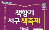 화순 김금덕 기자2024. 10.22[정보신문 = 김금덕 기자] 광주광역시 서구(구청장 김이강)는 오는 24일부터 26일까지 서구청 및 상록도서관 일원에서‘제10회 책향기 서구 책 축제’를 개최한다. ‘책축제 10주년, 미래를 펼쳐 행복을 읽다!’라는 주제로 열리는 이번 축제는 지역 주민들과 도서관 및 독서단체 관계자 등이 함께 참여해 다양한 볼거리와 즐길 거리를 선보일 예정이다. 주요 프로그램으로 ▲작가 북토크 ▲체험부스 ▲책 나눔 ▲독서캠핑존 등 친구·가족과 함께 즐길 수 있는 다양한 프로그램이 진행된다. 특히, 24일에는 지역서점과 연계해 서...