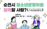 곡성 남재옥 기자2026. 02.11[정보신문 = 남재옥 기자] 순천시 청소년수련관과 문화의집은 청소년의 참여권 확대와 청소년 친화적 시설운영을 위해 청소년운영위원회를 모집한다. 청소년운영위원회는 「청소년활동진흥법」에 근거한 청소년참여기구로, 선발된 청소년운영위원은 2027년 2월까지 청소년시설 및 프로그램의 자문 및 평가에 참여하며 의견을 제시하고 활동기획·운영·시설모니터링 등의 역할을 수행한다. 이번 모집은 순천시청소년수련관과 문화의집이 공동으로 진행하며, 선발된 청소년운영위원들은 각 기관에서 시설 특성에 맞는 활동을 수행하게 된다. 이를 통해 주체적...