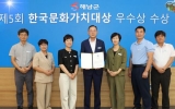 북구 김금덕 기자2024. 09.27[정보신문 = 김금덕 기자] 해남군이 제5회 한국문화가치대상‘우수상’을 수상했다. 한국문화가치대상은 전국 지방자치단체를 대상으로 지역의 특색있는 문화·예술 정책과 사업을 통해 지역민의 문화향유 기회를 확대하고, 한국 문화가치 수준을 제고한 지방자치단체에 시상하고 있다. 사단법인 한국문화가치연구협회에서 주관하고 문화체육관광부가 후원해 지난 2019년부터 시행하고 있다. 문화 핵심가치 7가지를 제시하고 지방자치단체의 문화예술 사업이 얼마나 핵심가치에 맞게 수행하였는지에 대해 각 분야의 전문가로 구성된 평가단 심사를 거쳤다. ...