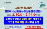 전주 남재옥 기자2026. 02.09[정보신문 = 남재옥 기자] 고창군이 설명절을 앞두고 5일간(10~14일) 고창전통시장에서 온누리상품권 환급행사를 실시하고 무료 셔틀버스를 확대 운영한다고 9일 밝혔다. 고창전통시장에서 국산 수산물을 일정 금액 이상 구매한 고객을 대상으로 온누리상품권을 환급하는 방식으로 진행된다. 환급 기준은 3만4000원 이상 구매시 1만원, 6만7000원 이상 구매 시 최대 2만원이다. 1인당 환급 한도는 2만원이다. 환급은 고창전통시장 동문 주차장 고객편의시설에서 받을 수 있으며, 예산 소진 시 조기 종료된다. 아울러 기존 ...