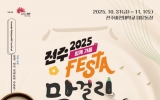 전주 김금덕 기자2025. 10.27[정보신문 = 김금덕 기자] 미식도시 전주에서 ‘전주 페스타 2025’의 대미를 장식할 마지막 축제인 ‘2025 전주막걸리축제’가 펼쳐진다. 전주시는 오는 31일과 11월 1일 이틀간 전주비전대학교 대운동장에서 막걸리와 다양한 먹거리, 전통문화가 한데 모여 가을밤을 따뜻하게 물들일 ‘2025 전주막걸리축제’를 개최한다고 27일 밝혔다. 이번 축제에는 삼천동 막걸리 골목의 업소들과 전주의 내로라하는 유명 막걸리 업소와 전주 지역 유명 맛집들이 대거 참여해 막걸리 안주 부스를 운영한다. 또한 전주의 막걸리와 음식 문화를 널...