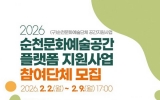 순천 남재옥 기자2026. 01.28[정보신문 = 남재옥 기자] (재)순천문화재단은 오는 2월 2일부터 9일까지 지역 문화예술단체의 안정적인 활동 기반을 마련하고, 문화예술 공간을 지역 문화예술 생태계의 거점으로 육성하기 위해 ‘2026 순천문화예술공간 플랫폼 지원사업’에 참여할 문화예술단체를 모집한다. ‘순천문화예술공간 플랫폼 지원사업’은 기존의 임차료 보전 중심 지원 방식에서 벗어나, 문화예술단체의 공간을 예술활동과 예술인간 교류, 시민과의 성과 공유가 유기적으로 이루어지는 공간 기반 문화예술 플랫폼으로 전환하는 데 목적을 두고 있다. 지원 대상은 순...