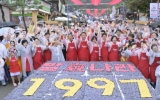 전북 김금덕 기자2025. 10.19[정보신문 = 김금덕 기자] 순창발효관광재단은 18일 전통 고추장 민속마을 야외마당에서 순창장류축제 대표프로그램으로 자리잡은‘발효나라 1997’프로그램을 운영했다. 1997년 민속마을 조성의 상징적 의미를 담아, 참가자들이 간장·고춧가루·메주가루를 상징하는 검정·빨강·노랑 가래떡으로 글씨를 만드는 퍼포먼스를 펼쳤다.