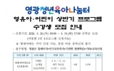 영광 남재옥 기자2026. 03.16[정보신문 = 남재옥 기자] 영광군은 ‘영광청년육아나눔터’에서 영유아・어린이를 대상으로 하는 「2026년 상반기 프로그램」 수강생을 모집한다고 밝혔다. 이번 프로그램은 지역 내 영유아와 어린이의 건강한 성장과 다양한 체험활동 기회를 제공하기 위해 마련됐으며, 6개 프로그램 60명 정원으로 운영하며, 아동별 1인당 1과목만 신청 가능하도록 운영할 계획이다. 수강생 모집기간은 3월 26일부터 3월 31일까지이며, 선착순으로 모집한다. 교육을 희망하는 영광군민은 영광군청 대표 누리집 “인...