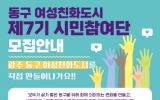 동구 남재옥 기자2026. 01.20[정보신문 = 남재옥 기자] 광주 동구는 주민이 직접 참여해 여성친화도시 정책을 만들어가는 ‘제7기 동구 여성친화도시 시민참여단’을 이달 30일까지 모집한다고 밝혔다. 여성친화도시 시민참여단은 행정 주도가 아닌 주민 참여 중심의 정책 협력 조직으로, 생활 현장에서 느끼는 문제를 발굴하고 여성친화 관점에서 개선 방안을 제안하는 역할을 수행한다. 주민의 시선에서 정책을 점검·보완함으로써 체감도 높은 여성친화도시를 조성하는 데 목적이 있다. 제7기 시민참여단은 동구에 주소를 두고 있거나 동구 소재 직장·학교에 다니는 사람을 대...