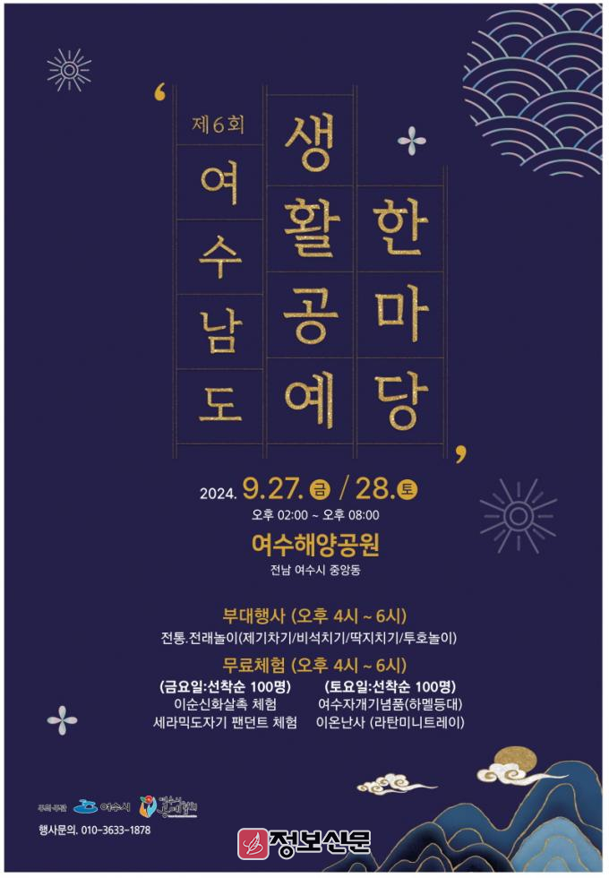 ![]() 제6회 여수남도 생활공예 한마당 행사가 오는 27일부터 28일까지 2일간 해양공원 무대 일원에서 개최된다. |