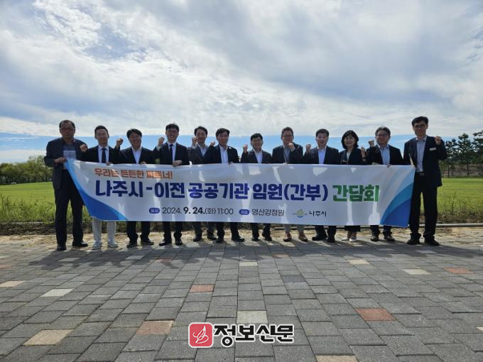 ![]() 나주시는 최근 빛가람혁신도시 이전기관 임원(간부)들과 영산강 정원에서 간담회를 가졌다. (사진제공-나주시)
